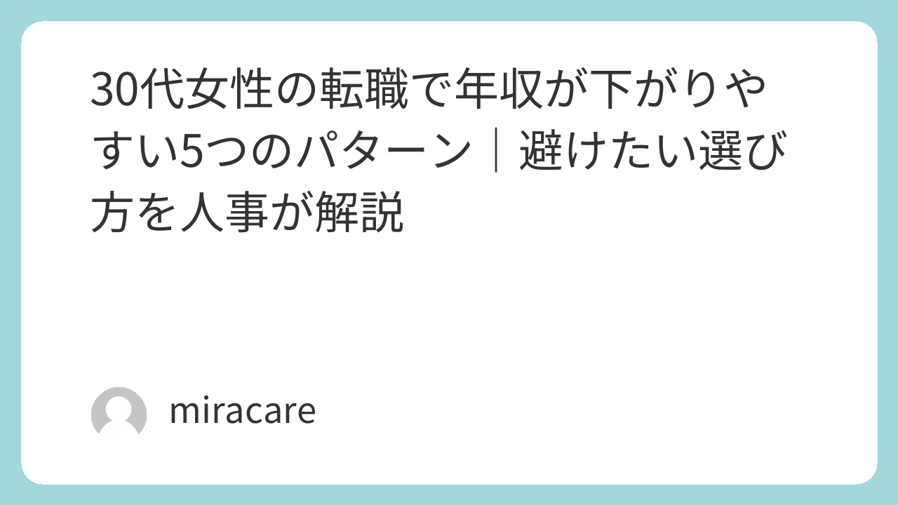 30代女性の転職で年収が下がりやすい典型的なパターンを