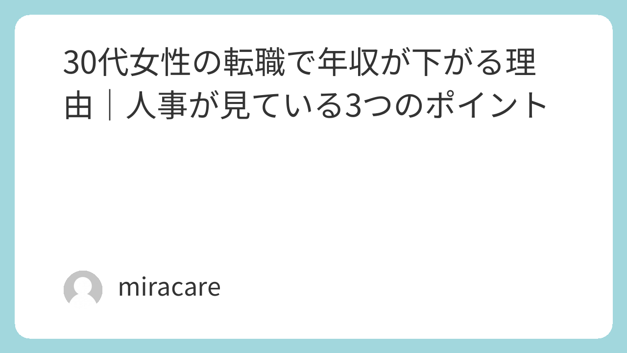 30代女性の転職で年収が下がる理由は、年齢そのものではありません。
