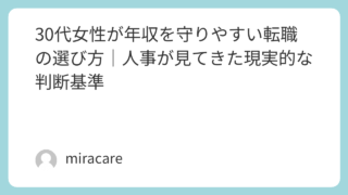 30代女性が転職で年収を下げないために知っておきたい、現実的な選び方を人事目線で解説。未経験転職でも年収を守りやすい判断基準をまとめています。