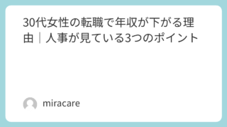 30代女性の転職で年収が下がる理由を、人事目線で解説。未経験転職でも年収が下がりやすいポイントや、評価されない原因、下げないための考え方をまとめています。